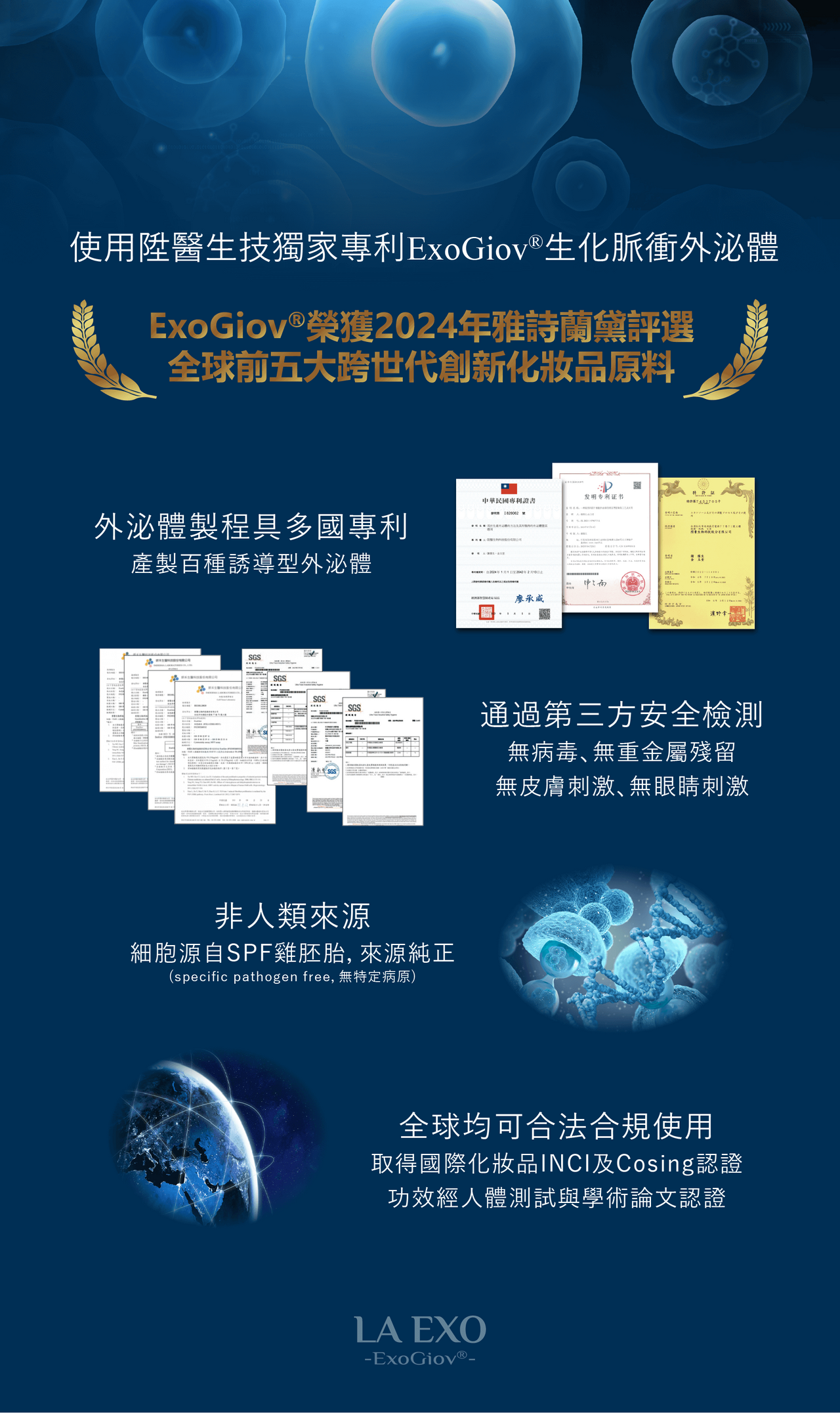 陞醫生技獨家專利生化脈衝外泌體.INCI Name: Chicken Embryonic Egg Exosomes (Trade Name: ExoGiov®)